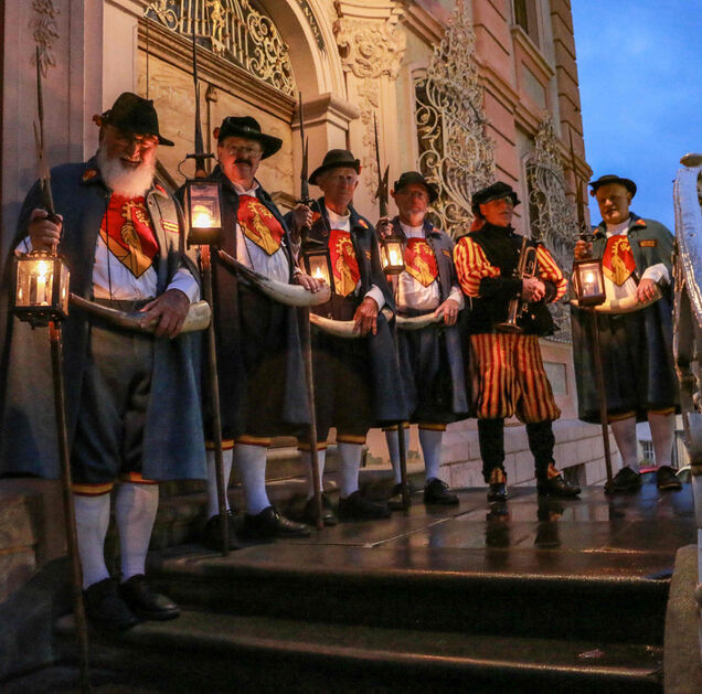 Erleben Sie die Bischofszeller Nachtwächter an der Rosen- und Kulturwoche.
